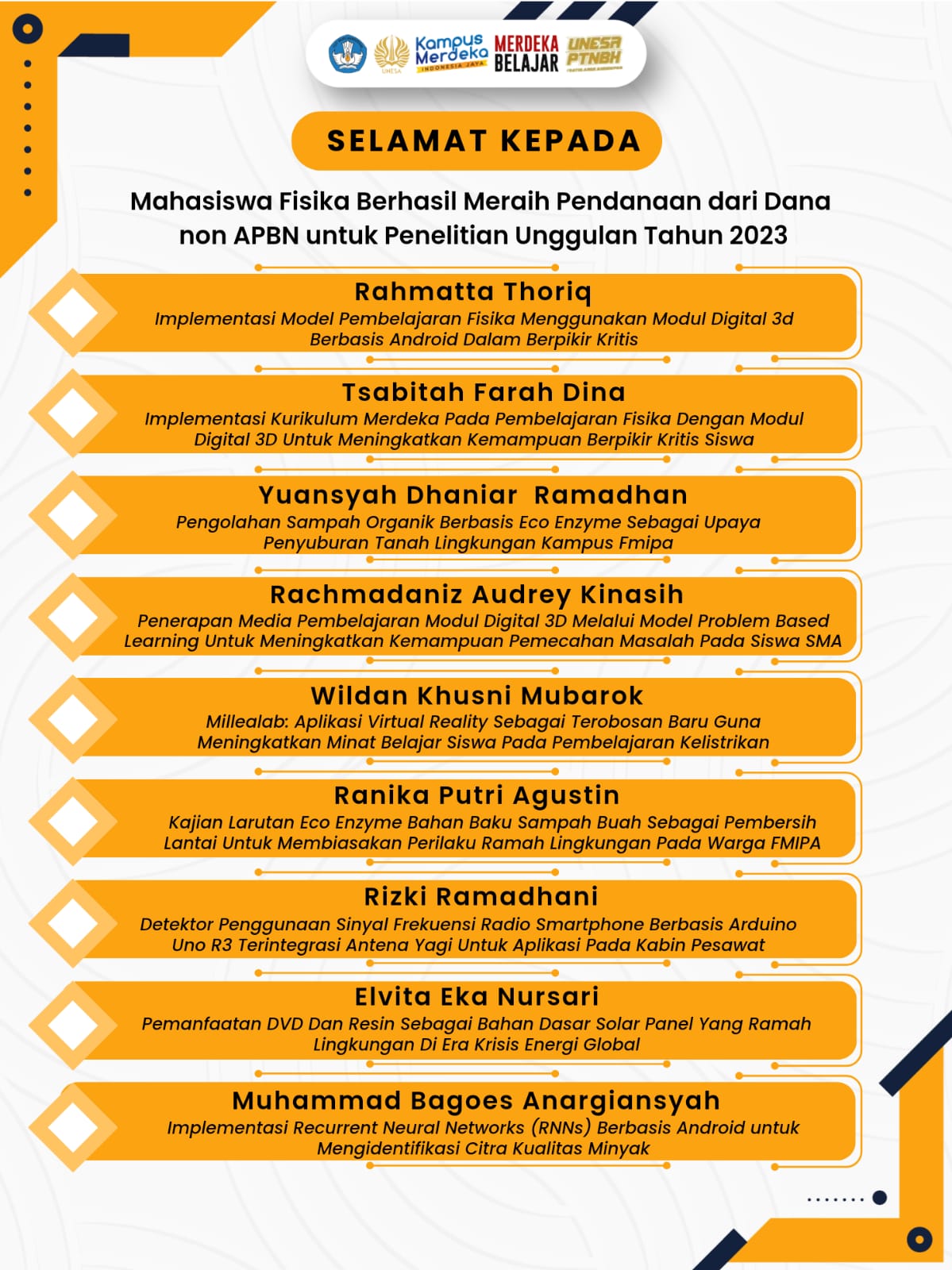 Negeri Surabaya yang berlokasi di kampus Unesa Ketintang. Jurusan Fisika telah