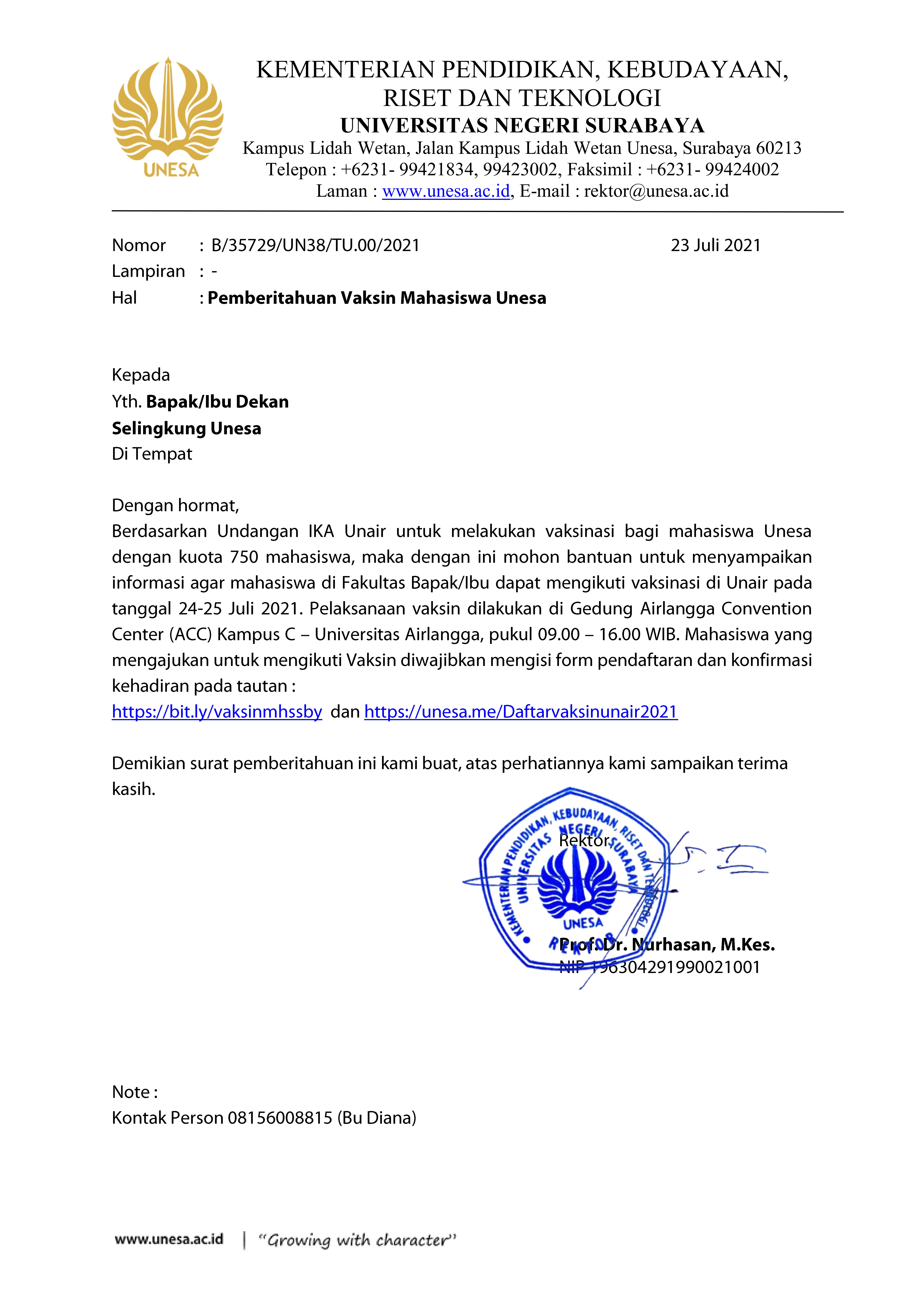 Berikut merupakan link pendaftraran : http://unesa.me/Daftarvaksinunair2021